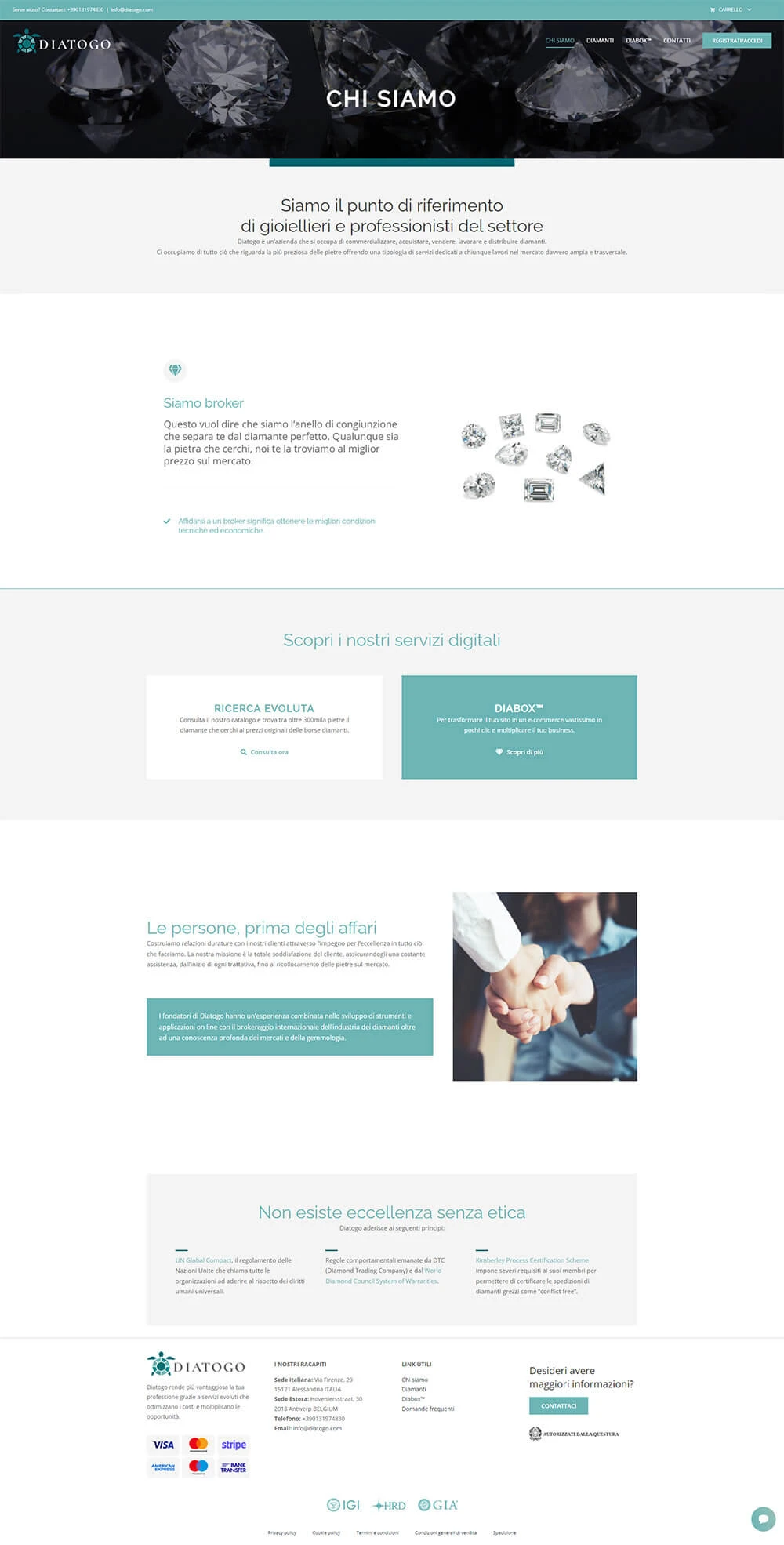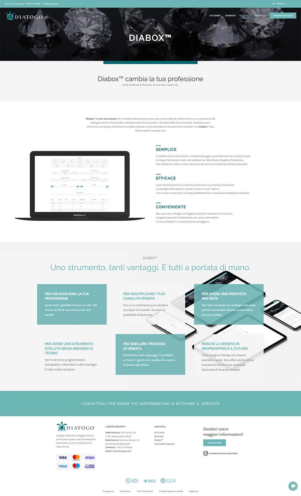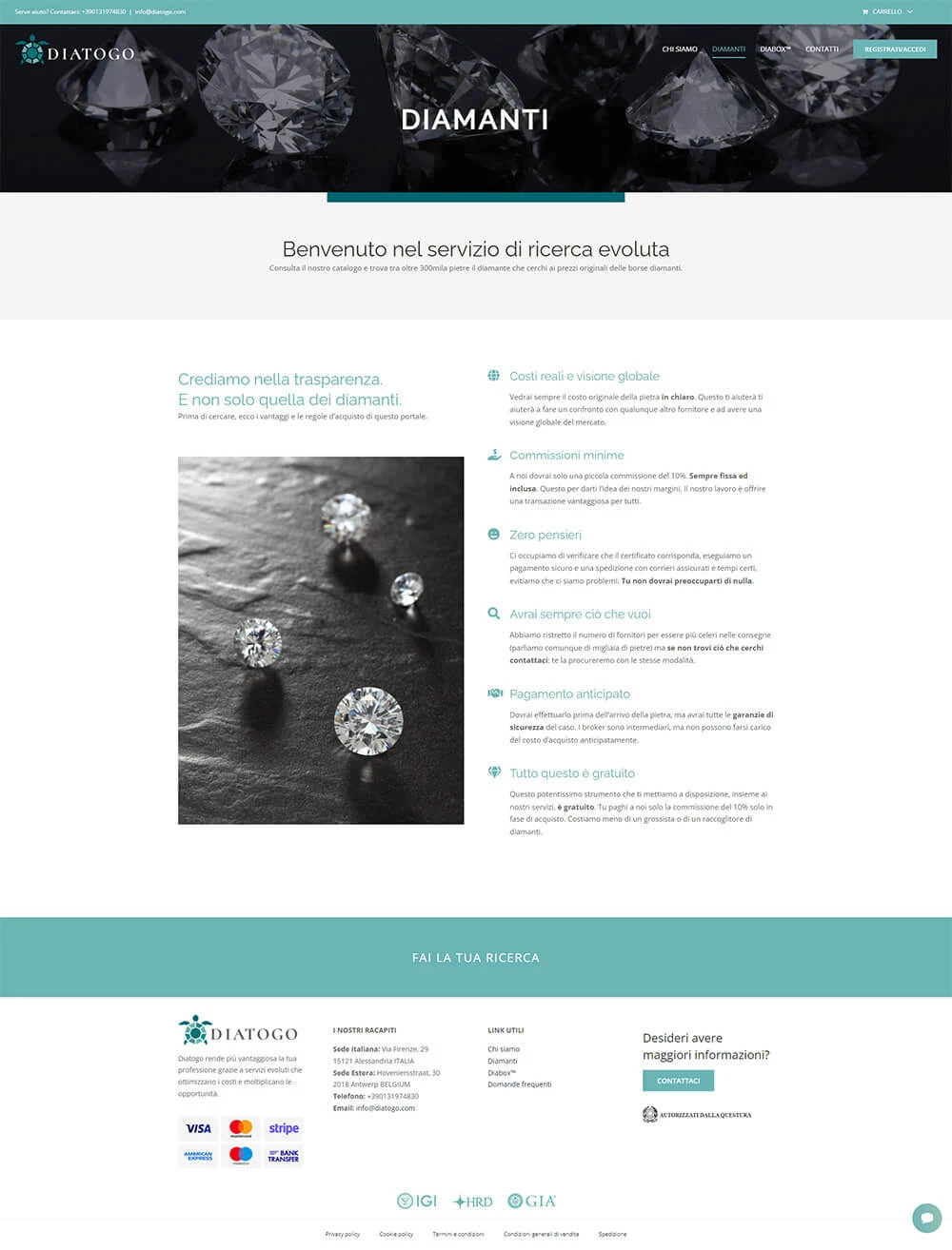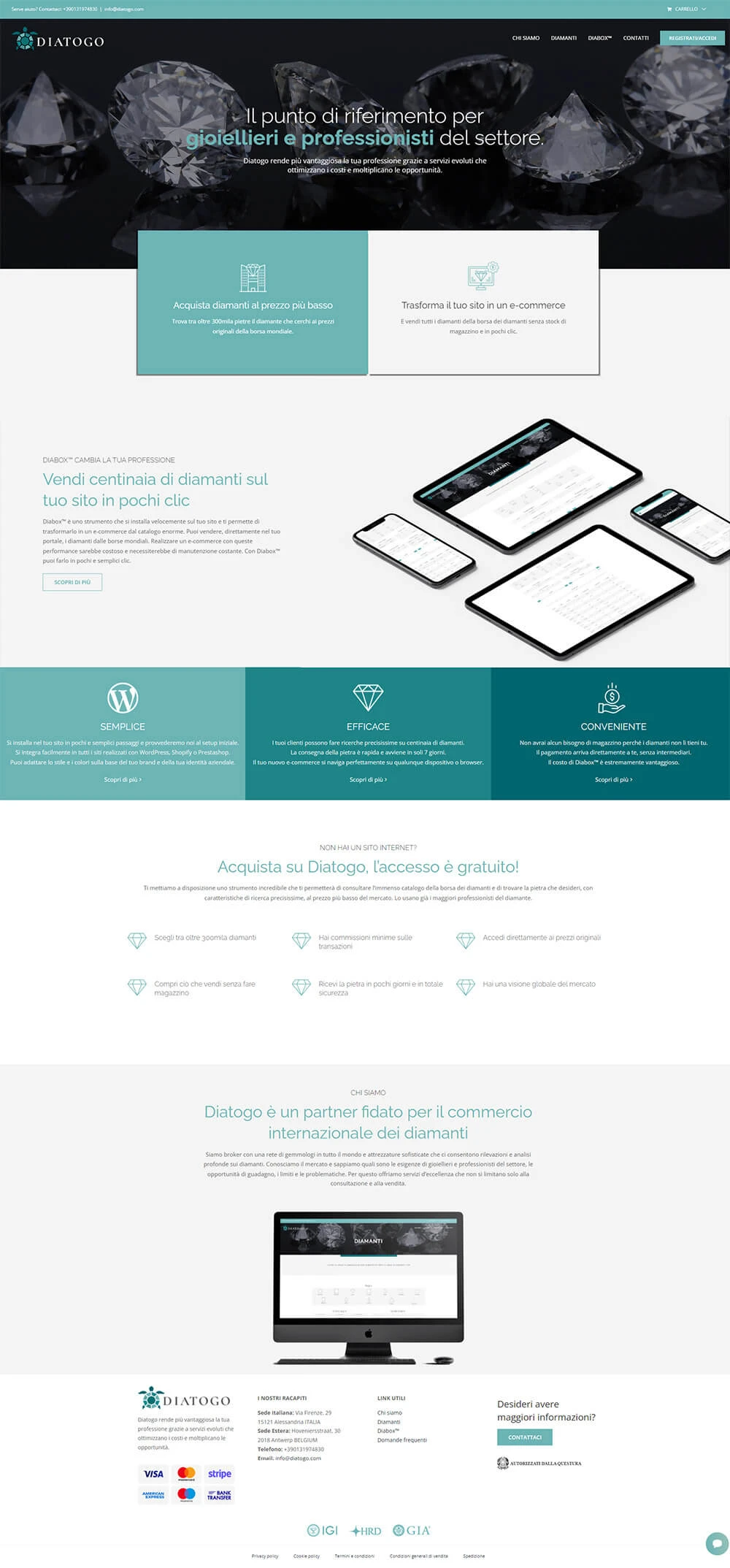 Sito per la distribuzione e gestione di un plugin per e-commerce nel settore diamanti