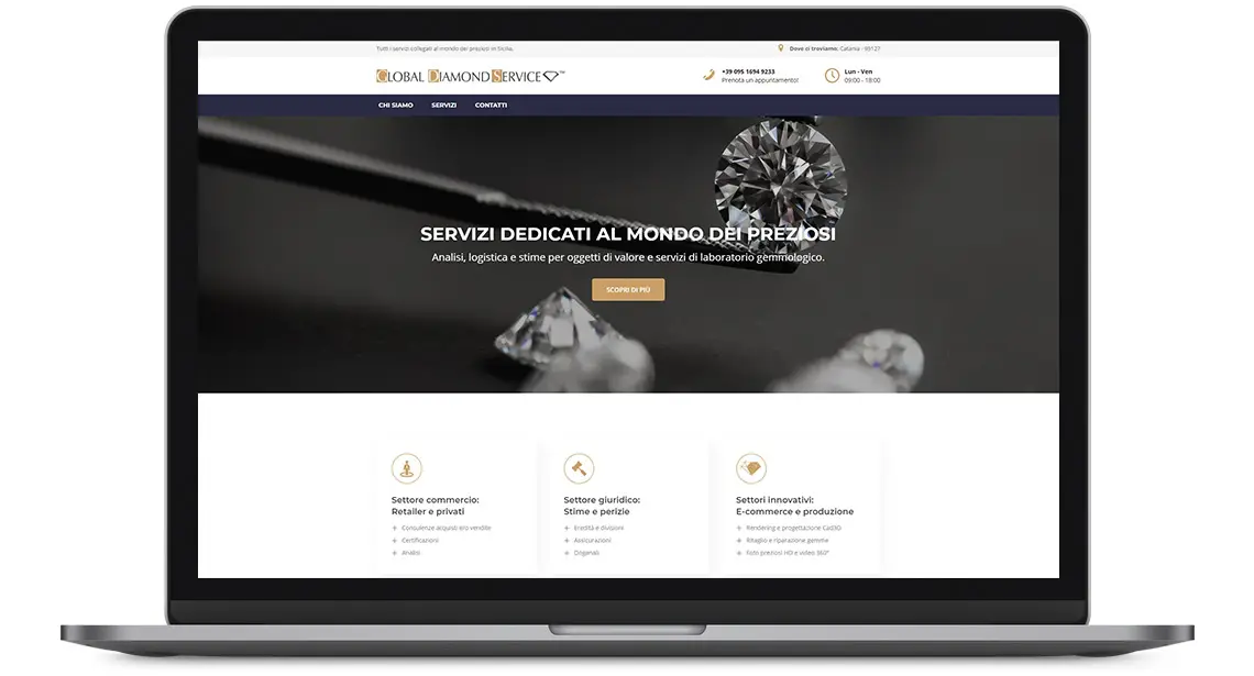 Global Diamond Service è un’azienda, con sede ad Alessandria, che fornisce servizi legati al mondo dei preziosi. La necessità era quella di pubblicizzare i loro servizi attraverso un sito vetrina. Il sito è ottimizzato per i motori di ricerca e adattivo ai diversi dispositivi. Viene anche agevolato il contatto da parte dell’utente attraverso un contact form che gestisce le stesse richieste sia via mail che nel sito stesso.